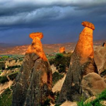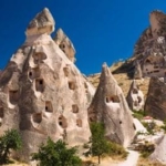 ومن أجمل الظواهر الطبيعية فيها، ظاهرة المداخن الجبلية الطبيعية، التي أبهرت السياح والزوار ، وبالقرب منها قمم بركانية، انفجرت قبل ملايين السنين، وأمطرت الجير، وتشكلت الصخور الرسوبية في البحيرات، والمجاري المائية، وتكونت الأعمدة الجيرية والحجرية، في منطقة “غوريم”، وانتصبت على شكل منارات، وسميت بالأعمدة الساحرة من روعة المنظر، فاكتشف سكان المنطقة بان الجير مادة سهلة الحفر، فاخذوا ينحتون لأنفسهم البيوت، والكهوف، والقصور، والكنائس مثل كنيسة “حي يوسف كوج”، و”اروتاخانة”، لتكون أجمل المشاهد السياحية والأثرية في “اورغوب”، و”غوز ليورت”، و”أوج حصار”، إلى جانب “غوريم”.